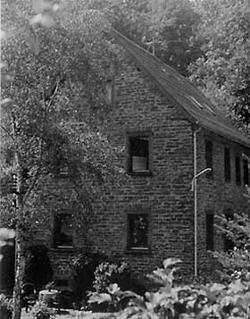 Vorbei an den Eingängen zu den Flurstücken " Im Kellersbüch " ( lt. Katasterauszug heißt es " Im Kellnersbüsch ") und " Dolling " etwa 400 Meter weiter liegt dann, schon im Wohngebiet des Ortseingangs von Hatzenport, wiederum auf der rechten Seite, die BORNS - bzw. PITSCHE - MÜHLE.