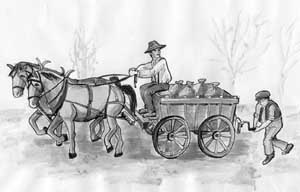 Der besagte Doktor, der die Feldarbeiten geschickt verrichtete, arbeitete auch in der Mühle mit. So waren denn der Stans Hein und sein Doktor viel mit dem Pferdefuhrwerk unterwegs, um einerseits die Feldarbeiten zu erledigen, zum andern die Mühlenprodukte an die Kunden zu bringen.